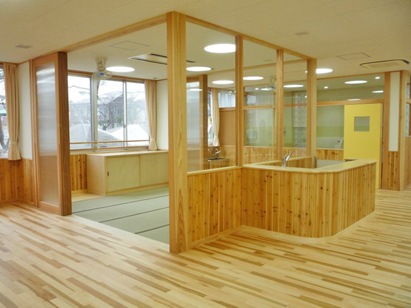 保育室は毎日の生活とじっくりあそぶ場であり、各保育室からテラスへ出られるようになっています。
